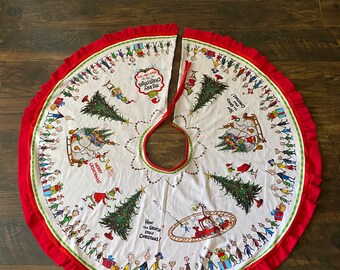 Christmas Tree Skirt White Red Green Grinch Who Stole Etsy Fabric Christmas Decorations Christmas Tree Skirt Christmas Fabric