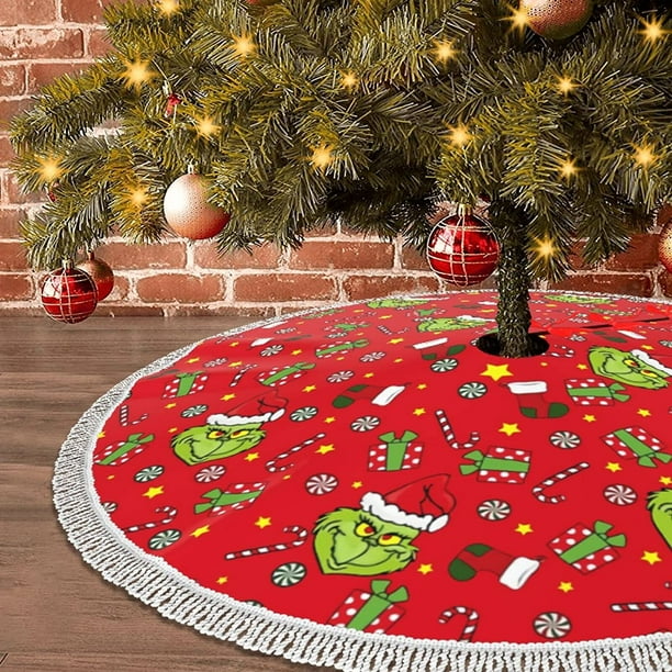 Dr Seuss Grinch Red Polyester Christmas Tree Skirt 48 Walmart Com